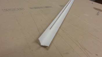 Deshalb hab ich an einer Kunstoffwinkelleiste eine Seite verschmälert und die Leiste mit der Breitseite nach unten von oben in die Zierleiste geklebt (mit ein paar Ecken Powerstrips).