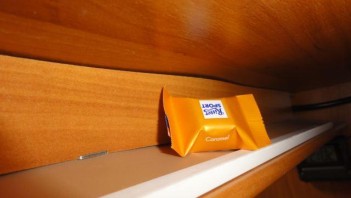 hatte schon mehrere unbefriedigende Versuche zu einer Brillenablage im Bett unternommen.