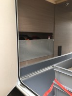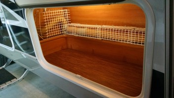 Die störende Türe beim Staufach ist nun weg und durch ein Gewebe ersetzt.