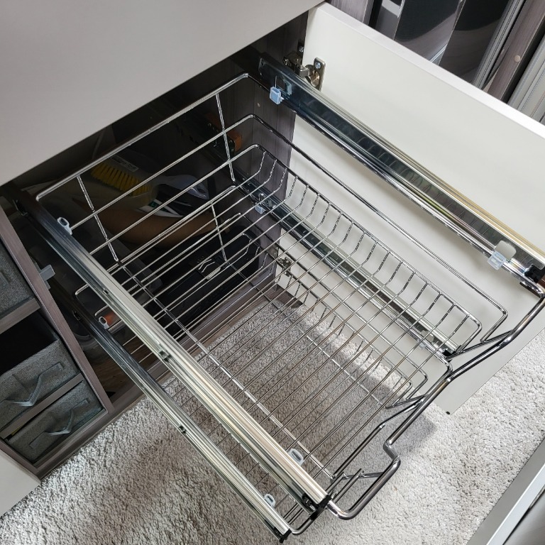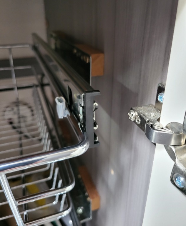 ich habe die von Udo empfohlenen Auszüge heute erhalten und bin gerade beim Einbau. Eine ganz schöne Herausforderung für einen alten Mann in diesem kleinen Loch. Brauchte erstmal eine Pause, nachdem ich fast zwei Stunden für die ersten beiden Schienen gebraucht habe. Ich berichte später noch genauer, nur soviel vorab: man braucht eine Leiste oder Klötze, wo man das drauf schraubt, da es ansonsten zu schmal ist. Und der Korb hat nur eine Breite von 31 cm. Gegenüber den fast 40 cm lichte Schrankbreite verliert man also fast 9 cm. Die Schienen haben einen wie ich meine unnötig breiten Winkel angeflanscht, wo ein paar cm verschenkt werden. Ansonsten macht alles einen sehr soliden Eindruck - qualitativ hochwertig, würde ich schon fast sagen. Für das Geld schon ein Schnäppchen.