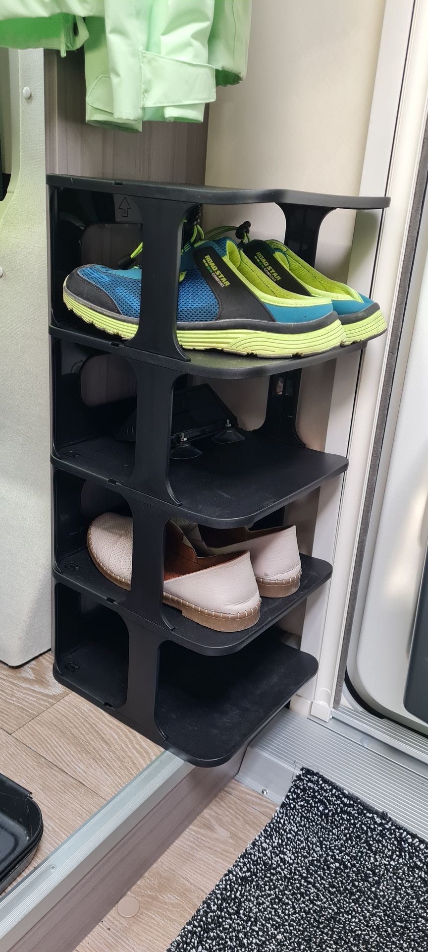 wir haben die Schuhablage im Eingang mit einem Schuhregal aus Kunststoff