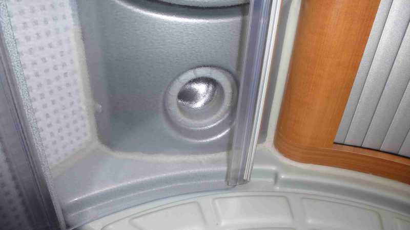 Da in unserem Mobil ein Bad mit runder Duschkabine eingebaut ist, wurde diese Kunststoffkabine durch das Endstück der Warmluftheizung bei Heizbetrieb ständig mit Heißluft befeuert. Siehe Bild1. Da Kunststoff aber bei permanenter Bestrahlung mit Heißluft brüchig wird, und sehr schnell altert, habe ich das geändert. An einem herkömmlichen Winkelstück für 50mm Abflussrohr habe ich einfach das Teil zur Aufnahme der Dichtung abgesägt Bild2. Aus dem Endstück des Luftauslasses habe ich die Luftklappe ausgebaut. Aus einem Stück Plexiglas wurde eine neue Luftklappe ausgesägt. Zwei Gewinde hineingeschnitten und die neue Klappe in das Abflussrohr geschraubt. Nun kann man den Luftstrom regulieren. Siehe Bild3. In der Heckgarage habe ich gleiches getan, da ich direkt vor dem Lüftungsauslaß Kunststoffboxen platziert habe. Nun wird der Luftstrom an diesen vorbeigeleitet.