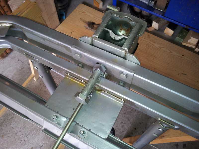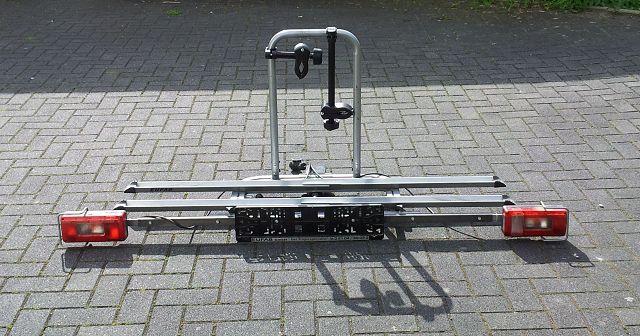 Jetzt hat dieser Träger auch keinen Schnellverschluss und wird mit einer Spannschraube auf dem Kupplungshaken befestigt.