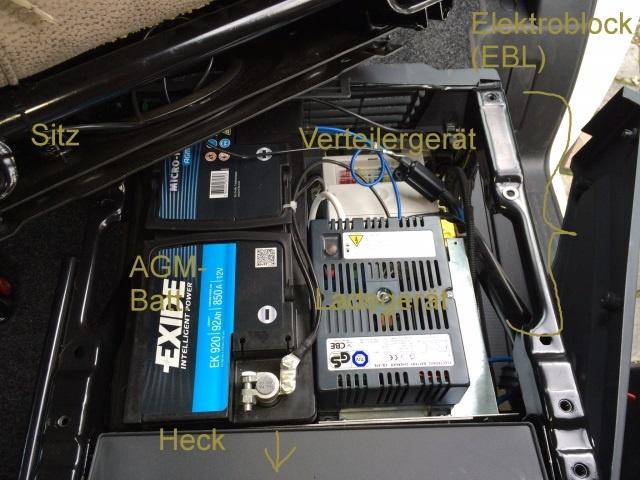Das Ladegerät und die Verteilbox brauche ich beim Transit nicht anzufassen.