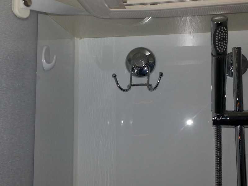 Im Bad – das uns im Übrigen auch super gefällt - habe ich einige diverse Utensilienbehälter mit Spiegelklebeband sowie einen Toilettenpapierhalter und einen klebbaren Vergrößerungsspiegel angebracht – Bild folgt. Leider, wie in fast jedem Wohnmobil, sind keine Streben in den Badschränken gegen das herabfallen von Dusch-, Crem-, Deo-, und Haargelflaschen installiert. Den Duschraum habe ich mit Haken versehen – teils selbstklebend, teils Saugkraft. Über der Eingangstür habe ich ebenfalls Ablagen (Schlüssel, Fernbedienungen) montiert. Im Schrank unter den Hobby-Gläsern habe ich ein Halterungsgummi für Weinflaschen sowie einen kleinen Wechselrichter für den Fernseher installiert. Die Gläser in der Gläservitrine habe ich mit Fensterdichtung fixiert – nichts klappert mehr. In der Heckgarage wurden von mir, zur Sicherung der Stangen von den Markisenseitenteilen, Besenhalter aus dem Baumarkt verklebt und verschraubt. Jetzt warte ich nur noch auf die bestellen Zurrösenschienen die ich oben, in Fahrtrichtung vorn, links, mittig und rechts anbringen kann. Dann dürfte in der Heckgarage Ordnung herrschen. Unsere E-Bikes kommen auf einen Übler-Fahrradträger der an der Anhängerkupplung befestigt wird – hält bombenfest. Sind mit dem alten Wohnmobil und den Bikes auf dem Träger bereits über 15.000 km auf nicht immer guten Straßen gefahren.