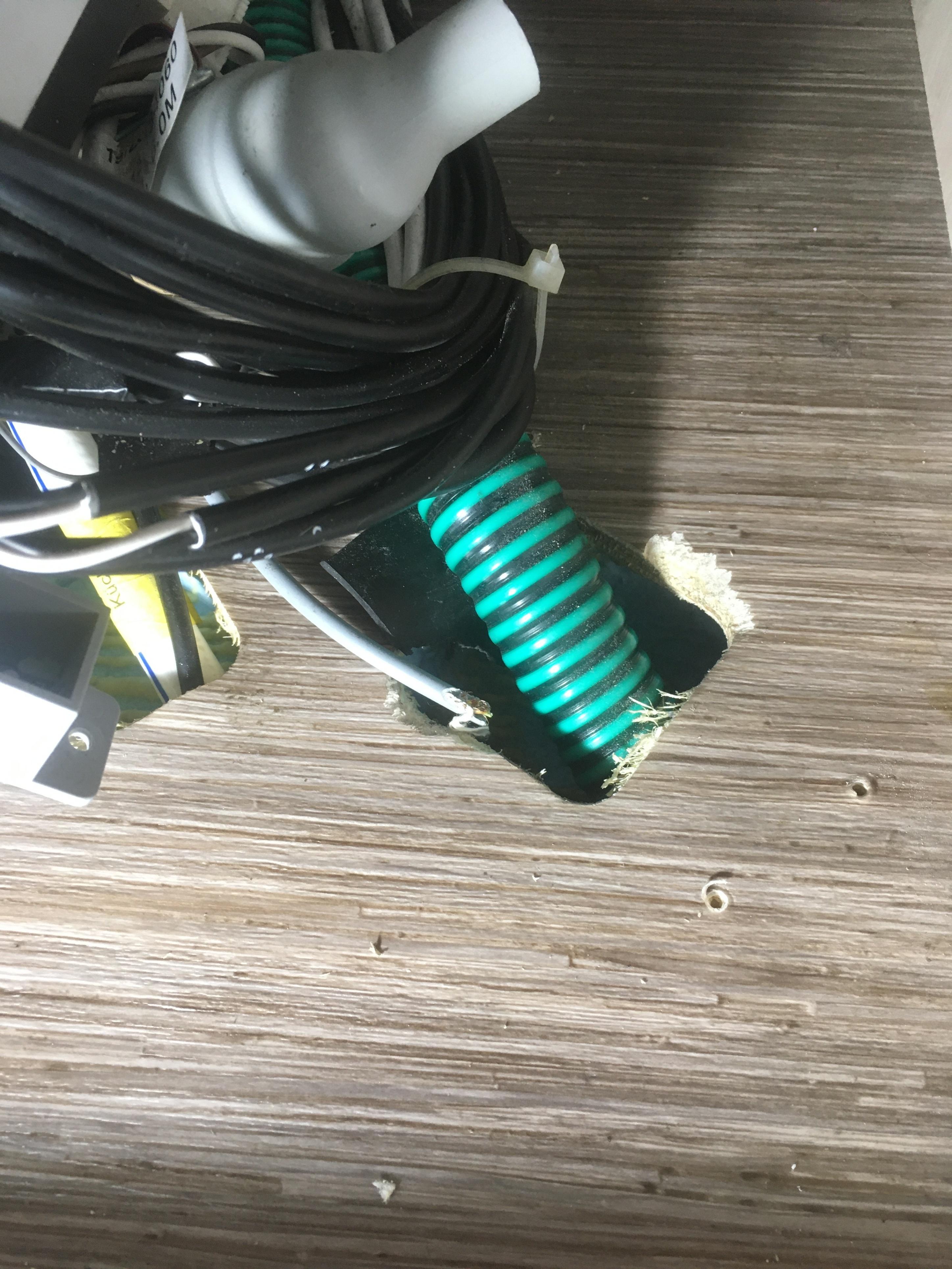 Die große Schlauch- und Kabeldurchführung im Kleiderschrankboden des VAN habe ich mit einem flexiblen engen Drahtgeflecht eines