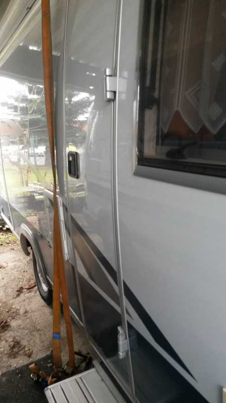 War bei meinem Umbau der Markise auch die einzige Möglichkeit, über die seitlichen Dachstreben das schwere Ding ganz alleine passend auf Höhe der Anbauplatten zu bekommen. -