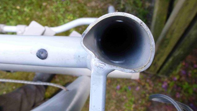 Leider hatte sich das umklappbare Rohrsystem durch die Hebelwirkung eingedrückt. Ich habe die Rohrenden wieder aufgedrückt und zur Verstärkung Hülsen aus Aluminium eingesetzt.