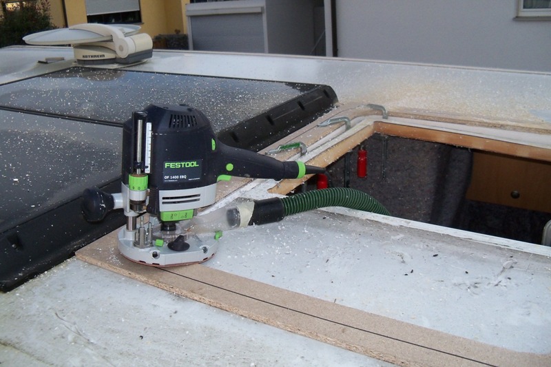 Das Heki 3 Plus Dachfenster hat die Ausschnitts Maße von 960 X 655 mm, die ich der Länge nach einbau. Dies graugetönte, doppelverglaste Isolations - Acrylglaskuppel kann man zum Lüften des Fahrzeugs mittels Kurbelmechanismus oder Gasdruckfeder ganz hochstellen, maximaller Öffnungswinkel von 70 Grad stufenlos einstellbar ,auch nach allen vier Seiten gekippt werden.