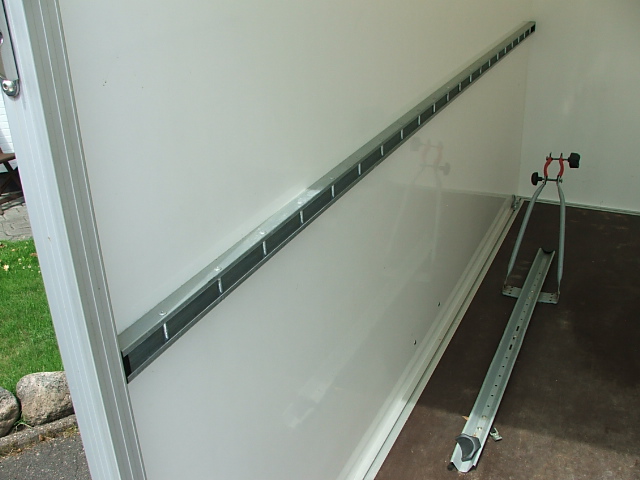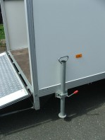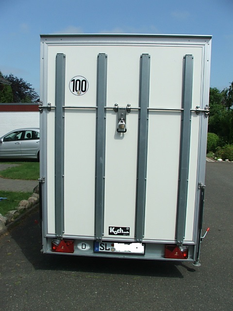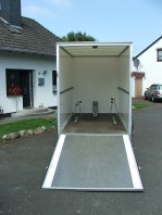 ist bis 500 kg belastbar. Innen ist eine Motoradwippe angebracht und er hat 6 verschiebbare Verzurrösen am Boden. An den Seitenwänden befinden sich je eine Stäbchenzurrleiste. Deckenbeleuchtung über 12 Dauerplus. 13 pol. Stecker.