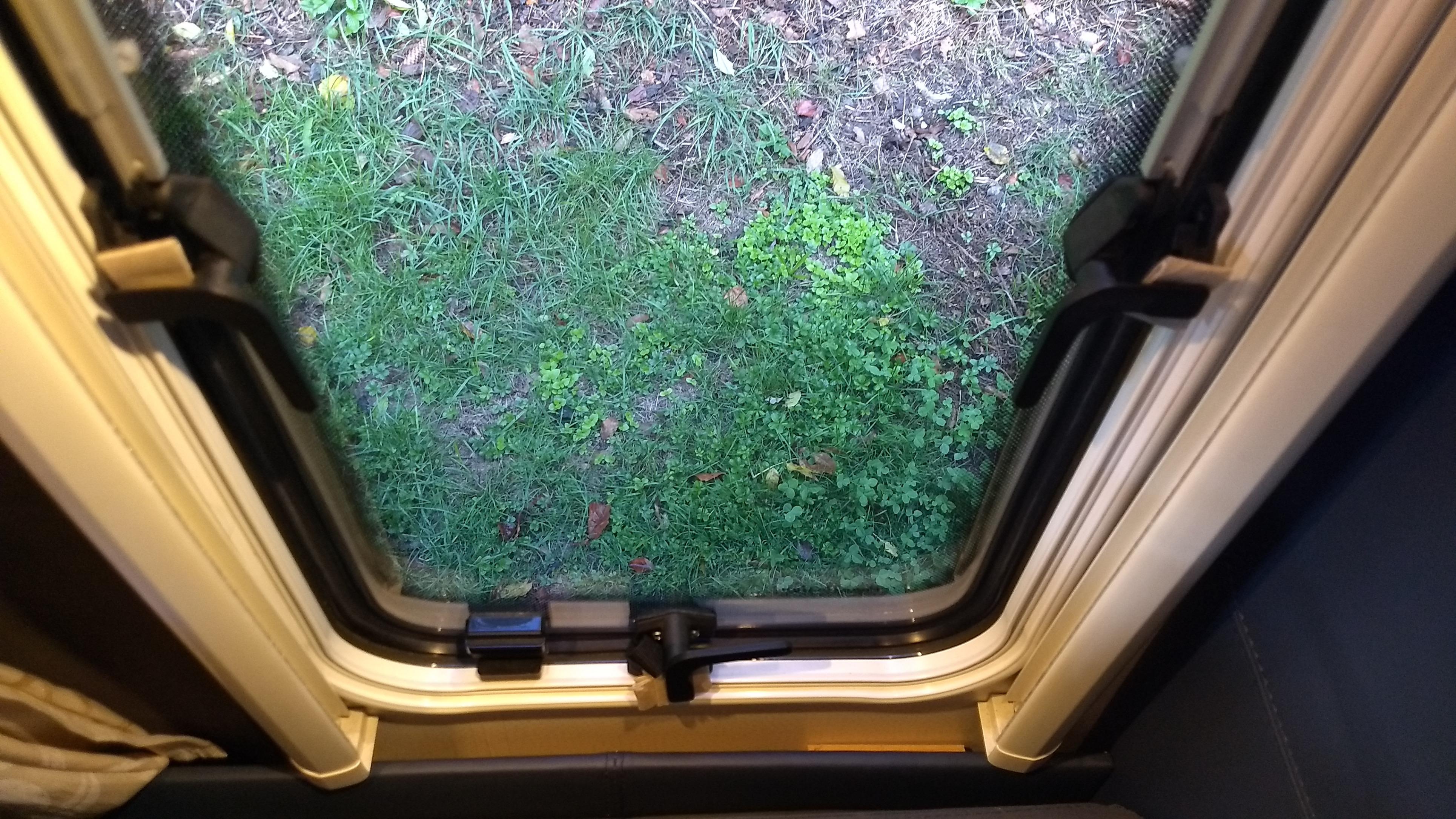In der kalten Zeit bemerkte ich, dass es bei allen Fenstern im unteren Bereich ziemlich stark kalte Luft reinzieht. Habe jetzt mal zum Testen Pappe unterlegt an den Verschlüssen. Beim schmalen Fenster bei der Aufbautür versetzte ich den Verschluss am Rahmen weiter nach innen, zirka 3mm, gab dann wohl zuviel druck aufs Glas, hat dort kleine Spannungsrisse gegeben.