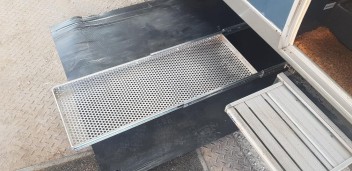 Gottseidank ist die Trittstufe aus Leichtmetall und dadurch leicht verformbar