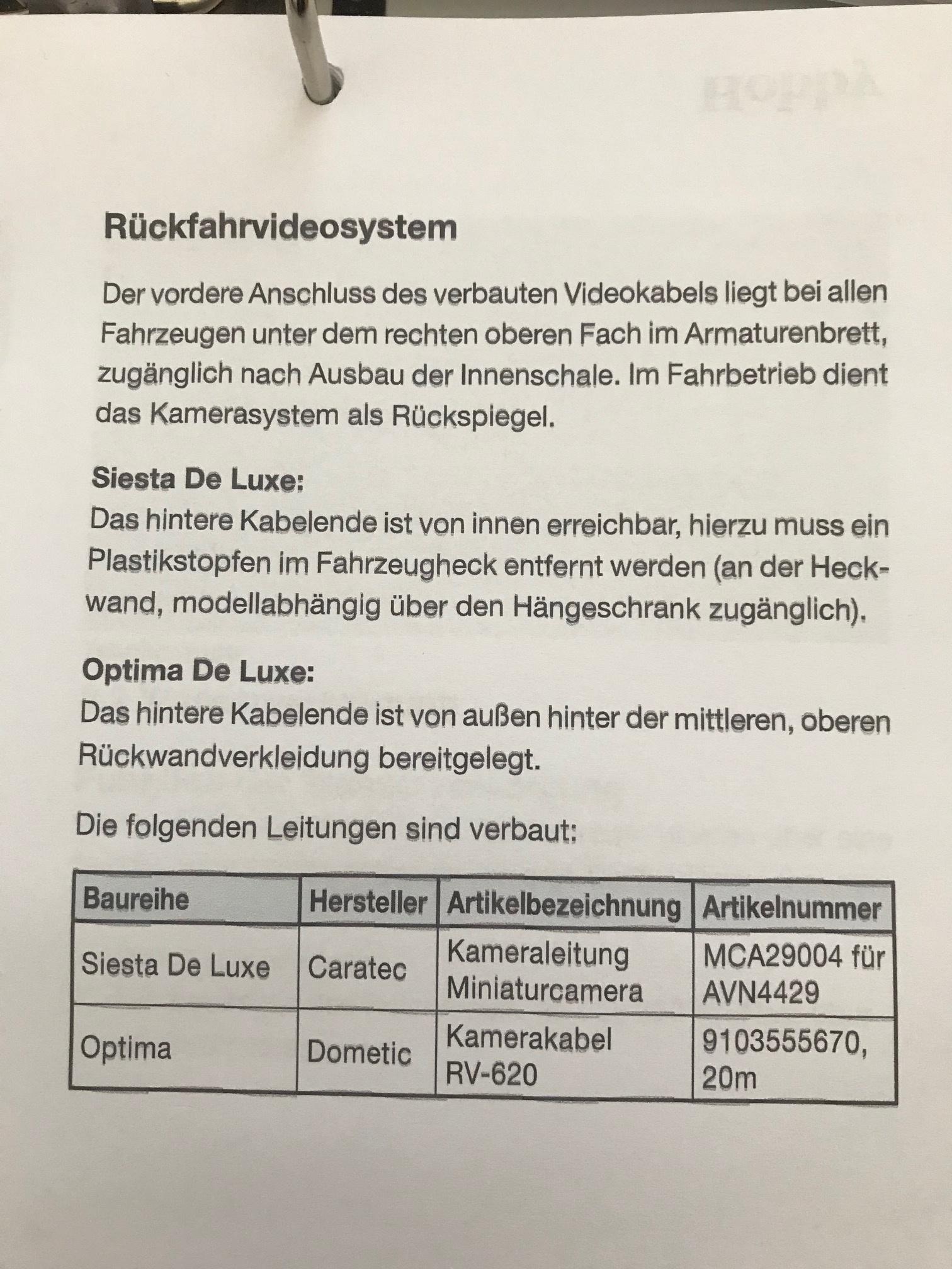 vielen Dank für Deine positive Erfahrungen. Ich muß jetzt erst mal schauen wie ich an den Kabelanschluß hinten bei meinem Optima V65 GE von 2018 rankomme und dann schau ich mal wie und wo ich die WAECO Kamera befestigen kann.
