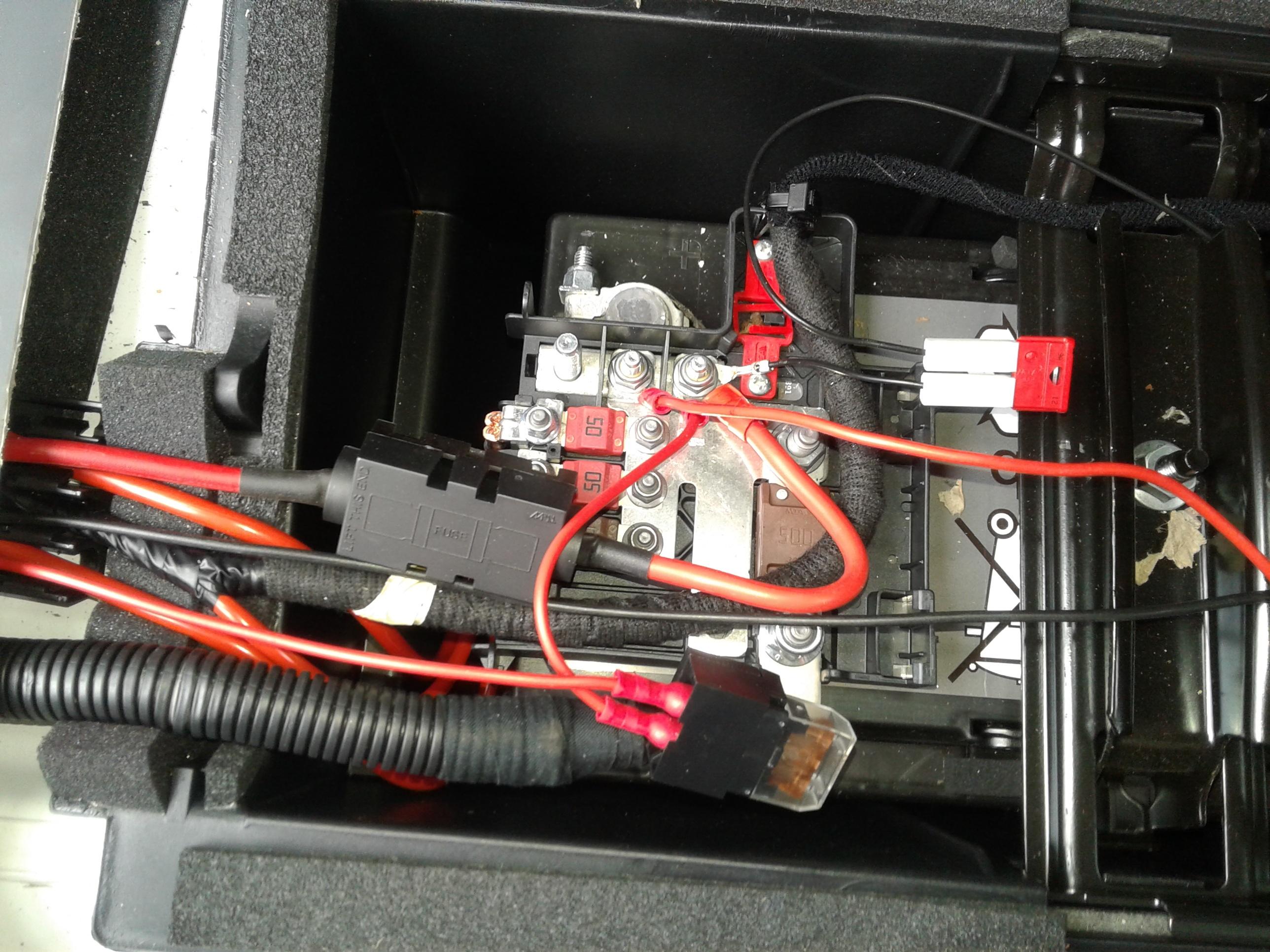 wir haben uns vor der Auslieferung von unserem Hobby-Händler noch einen Batterie-Computer Büttner MT 5000 iQ einbauen lassen. Bei der der Übergabe fiel mir direkt ein dünnes rotes Kabel auf, dass von der Fahrersitzkonsole in den Boden geht und auf der Beifahrerseite wieder herauskommt. Es ist nicht gegen Verrutschen gesichert und lässt sich zwischen den Sitzen geschätzte 20 cm hin-und herschieben.