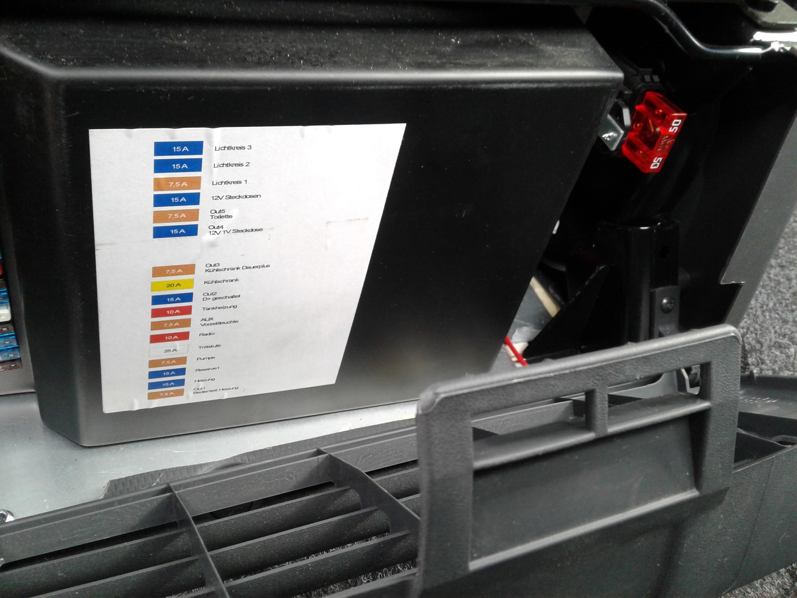 Die beide Aufbaubatterien Exide EK 950 AGM 95Ah wurden auf 25% entladen. Dann wurde die geleerten Batterien mit dem Ladebooster Büttner MT LB50 nachgeladen. Ladestrom am Anfang bis zu 60A!. Die Sicherung hält. Als weitere Verschärfung wurde über Landstrom das interne Ladegerät Dometic SMP 439 noch dazu geschaltet. Ladestrom über 80A!. Sicherung hält. Alle möglichen Verbraucher bis auf den Kühlschrank dazugeschaltet. Sicherung hält. Der Ladestrom wurde über den Batteriecomputer Büttner MT 5000 iQ angezeigt. Es erfolgte keine Messung an den Kabeln über ein Zangenamperemeter.