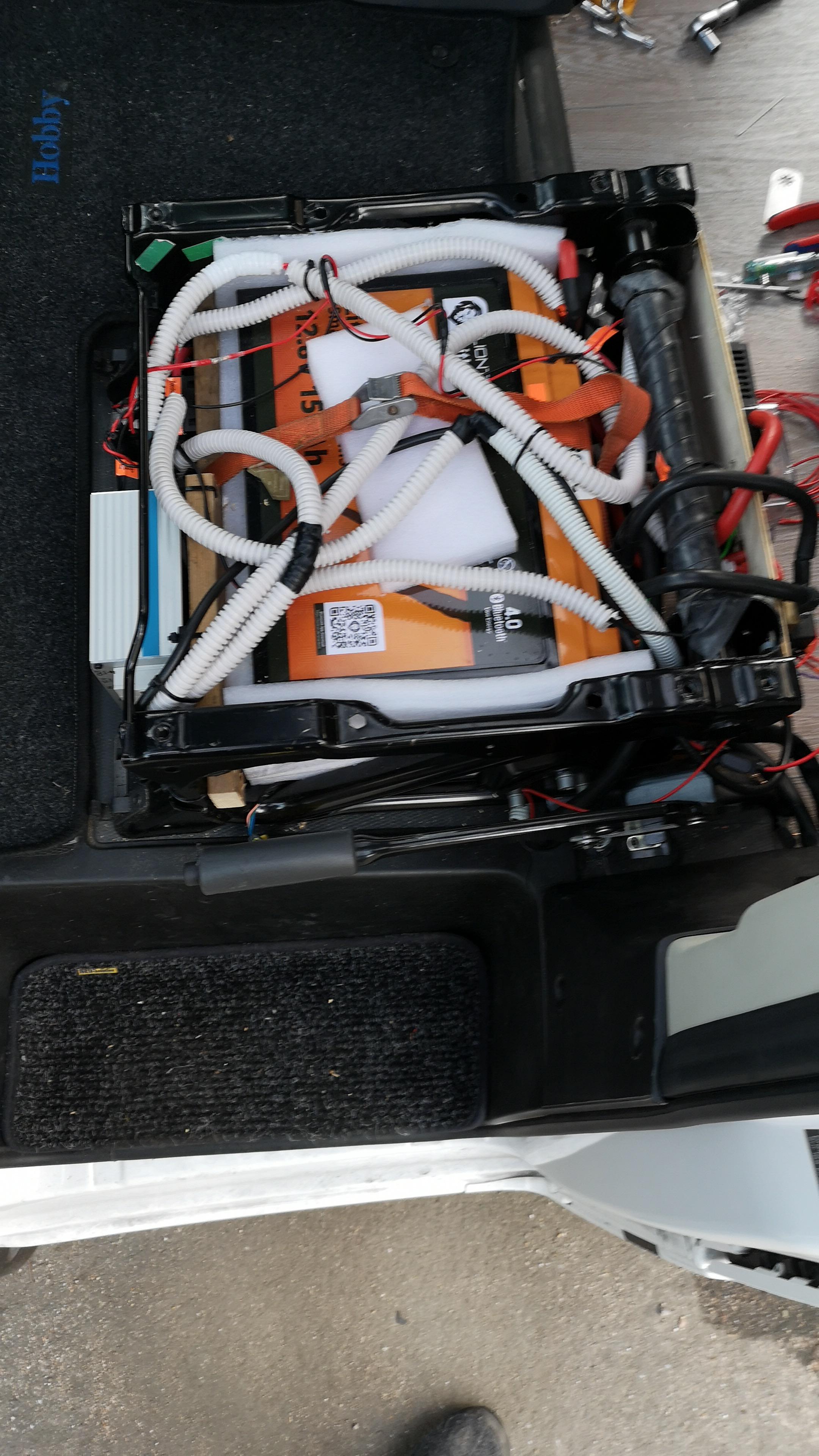 Ladebooster wurde unter dem Fahrersitz neben der zweiten Batterie verbaut.
