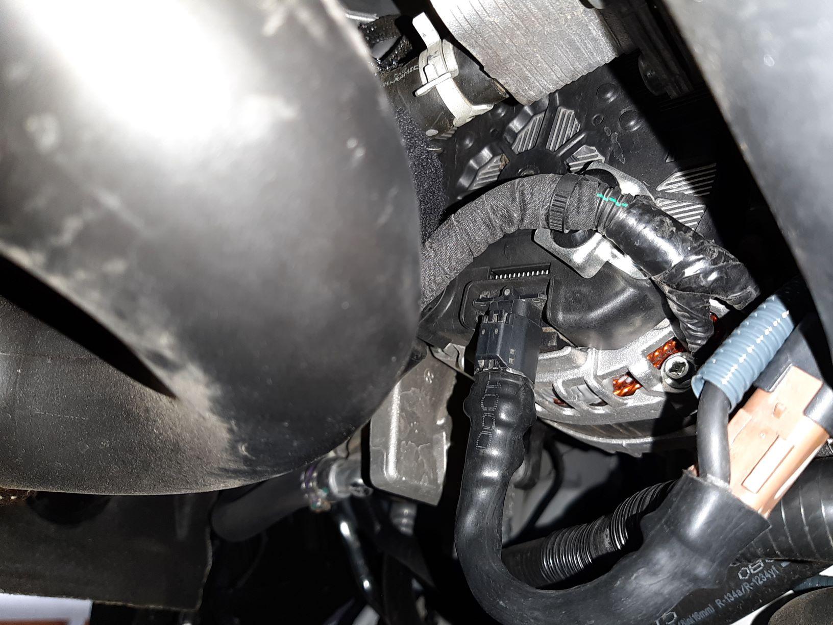 Ich habe überprüft, dass der obere Pin derjenige ist, der die Lichtmaschinenspannung steuert (das Abklemmen des unteren Pins hat nichts bewirkt). Als ich den oberen Pin abtrennte, änderte sich die Spannung von 12,2 V auf 13,7 V.