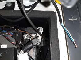 Nun gelangt das Steuerkabel durch den Batteriekasten in die Kabine.