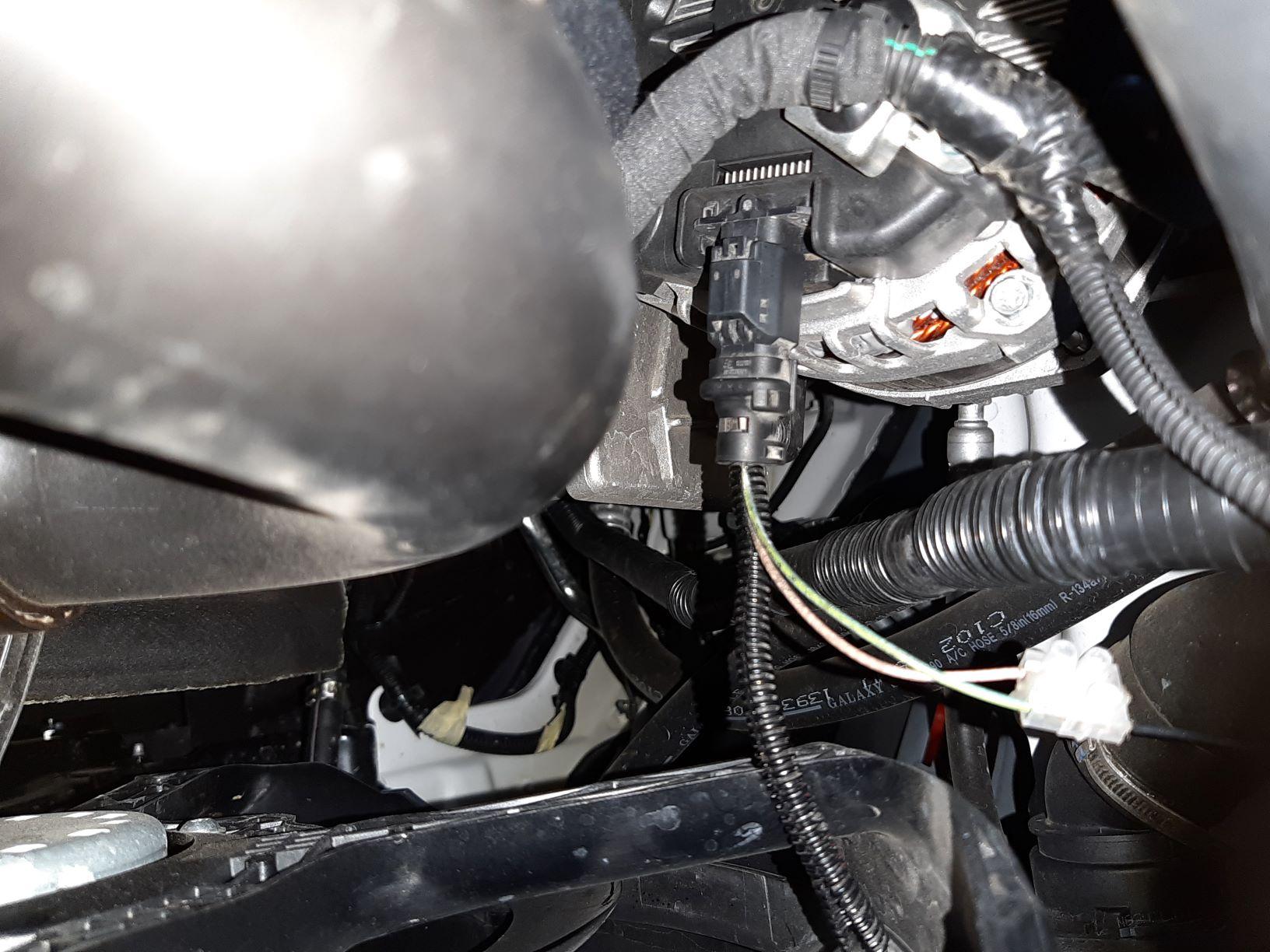 Ich habe überprüft, dass der obere Pin derjenige ist, der die Lichtmaschinenspannung steuert (das Abklemmen des unteren Pins hat nichts bewirkt). Als ich den oberen Pin abtrennte, änderte sich die Spannung von 12,2 V auf 13,7 V.