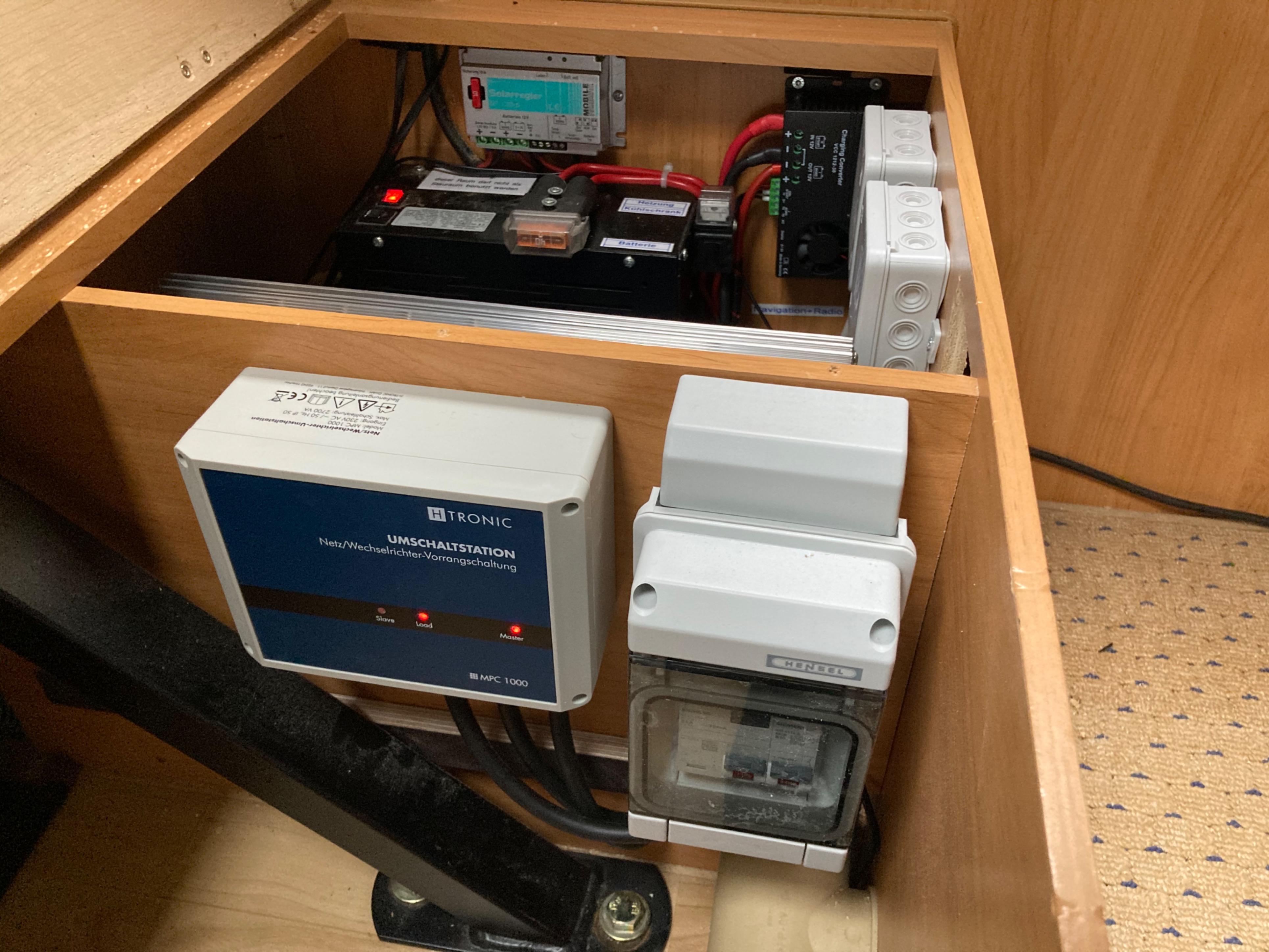 Für die Netzvorrangschaltung musste ich ein neues Kabel zu den beiden Steckdosen am Herd ziehen, weil diese auf einem anderen Stromkreis hängen als die restlichen Steckdosen. Leider musste ich mit dem Kabel durch den Gaskasten... ich hoffe mal, dass das bei der nächsten Gasprüfung kein Problem darstellt. Kühlschrank und EBL hängen vor der Netzvorrangschaltung.