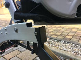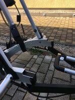 Der Atera Strada DL 3 ist für bis zu drei Räder geeignet, jedoch kann man am Kastenwagen ohnehin nur die vorderen beiden Schienen nutzen, da sonst die Türen am hinteren Rad hängen bleiben. Außerdem sind die Fahrradlenker (zumindest bei unseren MTB) so breit, dass sie am Heck anschlagen würden. Also entfernte ich die entsprechenden Halterungen für das dritte Rad.