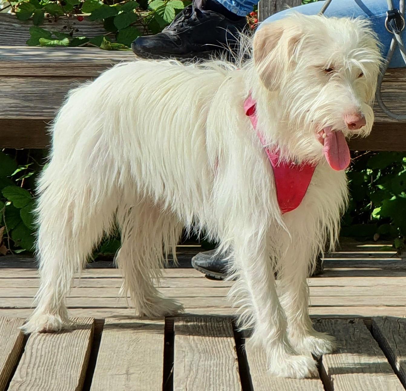 Ella (eigentlich Antonella) kam über die Tierhilfe aus Sardinien zu uns und nun gehört sie zur Familie und geht natürlich mit auf Reisen. Sie ist ein Terrier-Podenko-Mischling und relativ klein (Foto anbei).
