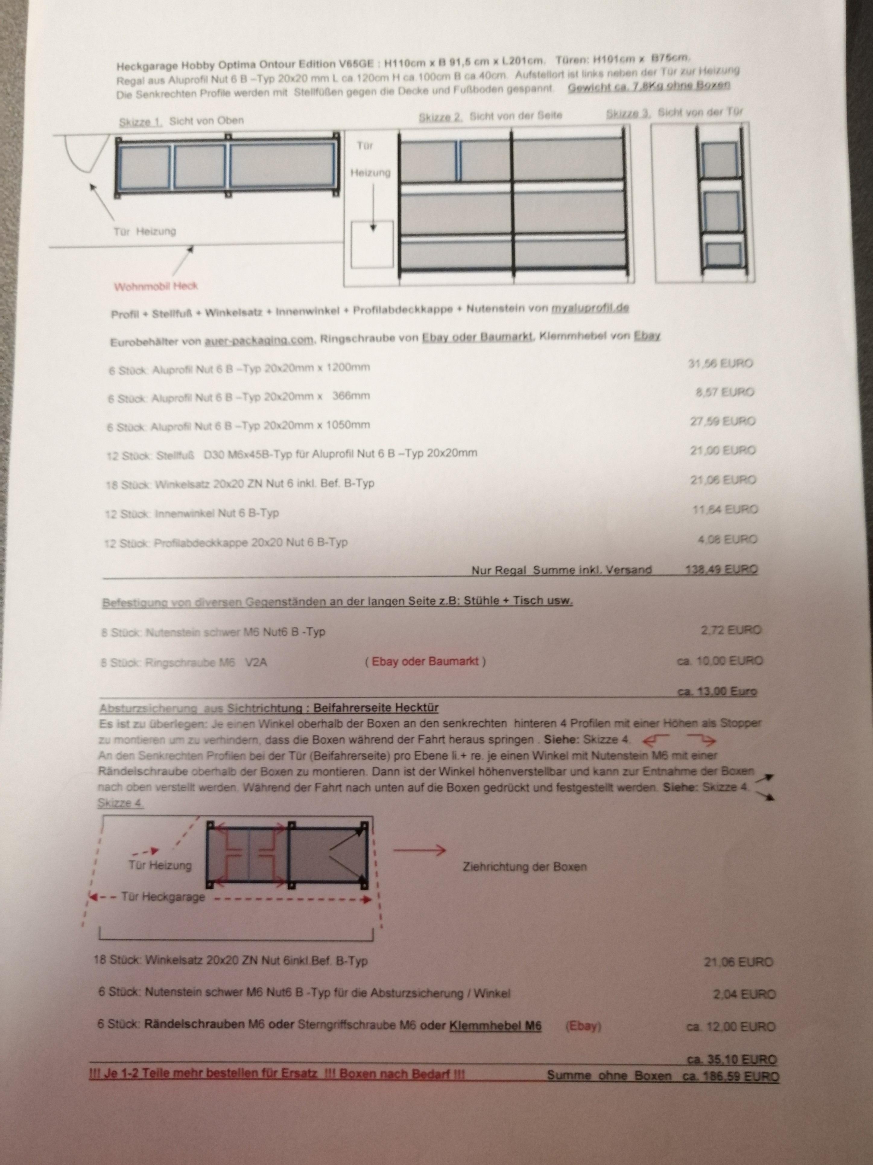 Das Material fürs Heckgaragen-Regal ist bestellt,Solar in der Planung usw.
