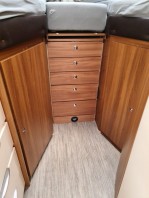 Also habe ich die ungenutzte Treppe jetzt ausgebaut und dafür einen neuen Schubladenschrank eingebaut.