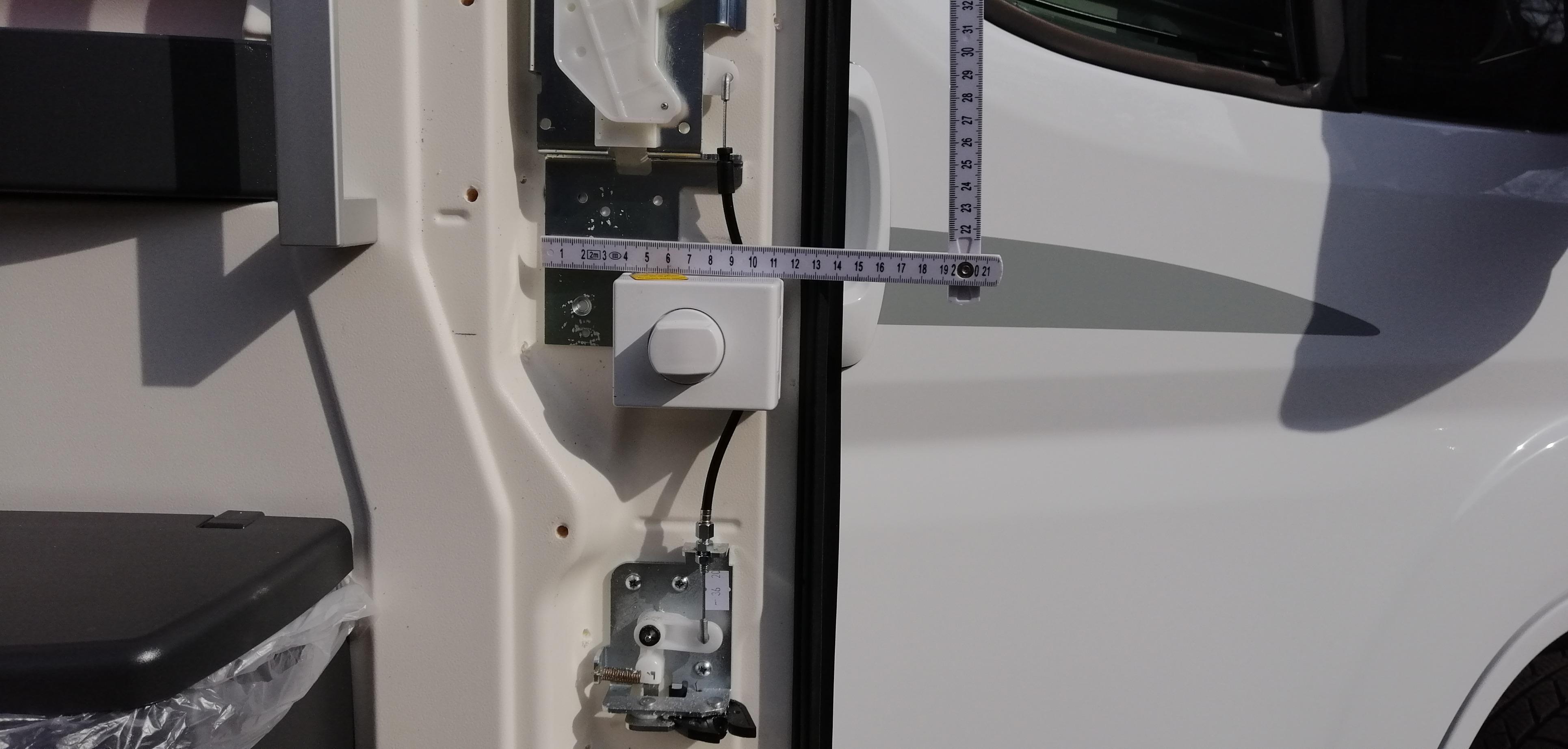 dann wünsche ich Dir gutes gelingen. Wie schon geschrieben ist es nicht ganz leicht den Kabel durch die ausgeschäumte Aufbautür zu verlegen. Ich hatte dazu meinen längsten Bohrer(ca. 30cm) genommen und von oben und unten ein Loch gebohrt, die Schwierigkeit war das sich beide Bohrlöcher trafen, ich habe dann mit einer Metallstange am Akkuschrauber das Loch weitergebohrt, was dann nach gefühlt 100 Versuchen geklappt hat. Hierbei muss man höllisch aufpassen das man die Aufbautür von innen weder nach außen ans Blech noch nach innen an die Plastikverkleidung bohrt. Ist mir nach innen passiert, d.h. Plastikverkleidung leicht verformt, zum Glück hinter dem Abfalleimer (siehe Bild) wo man es nicht sieht. Im nach hinein würde ich einen entsprechend langen Bohrer (gibt es den überhaupt?) oder einen Bohrer an eine Eisenstange schweißen um so von einer Seite die gesamte Bohrung auszuführen.