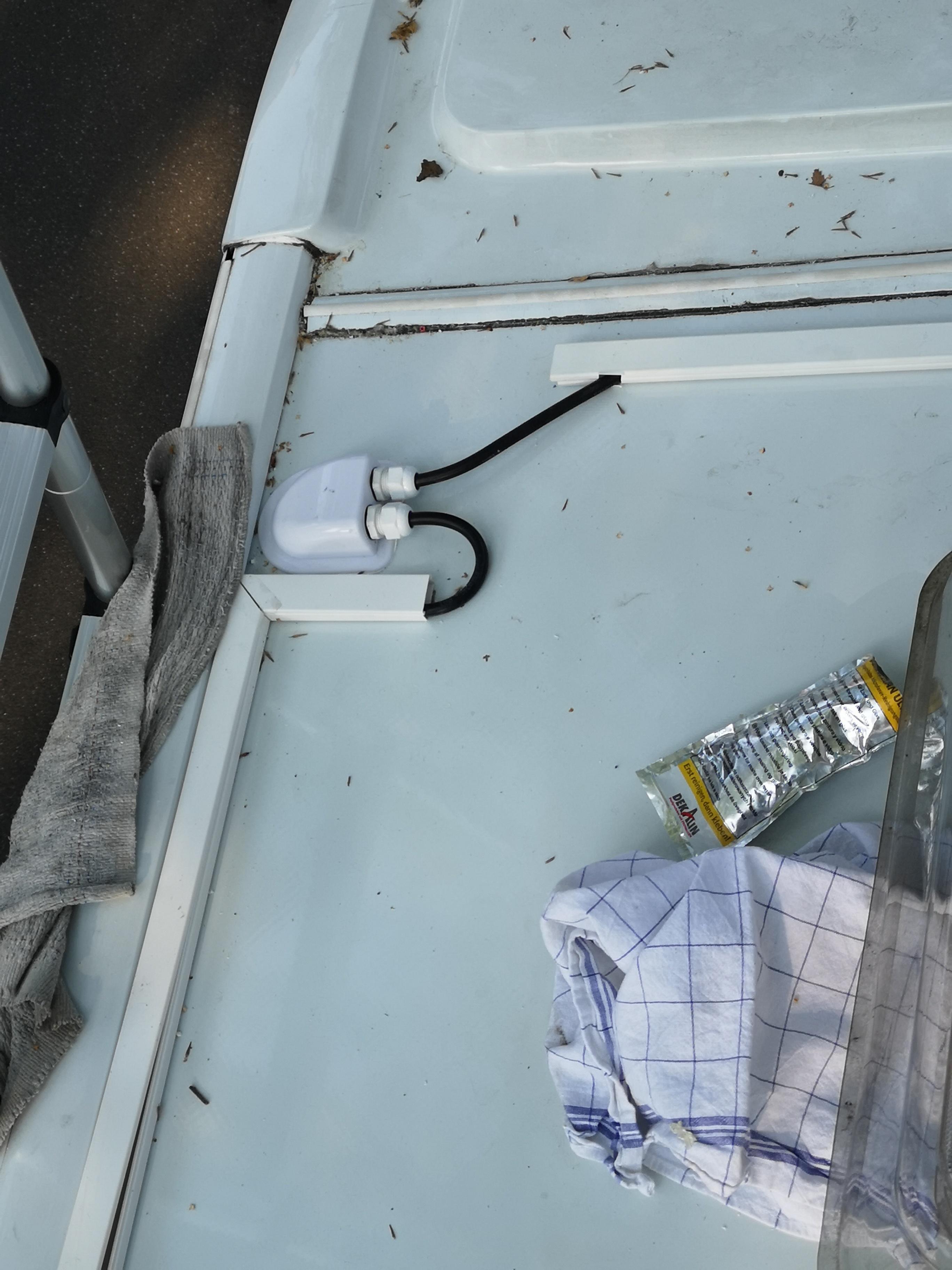 2. Werden die Solarplatten nur geklebt oder auch geschraubt? Mir persönlich würde nämlich ein einziges Loch für die Kabeldurchführung reichen ![]()