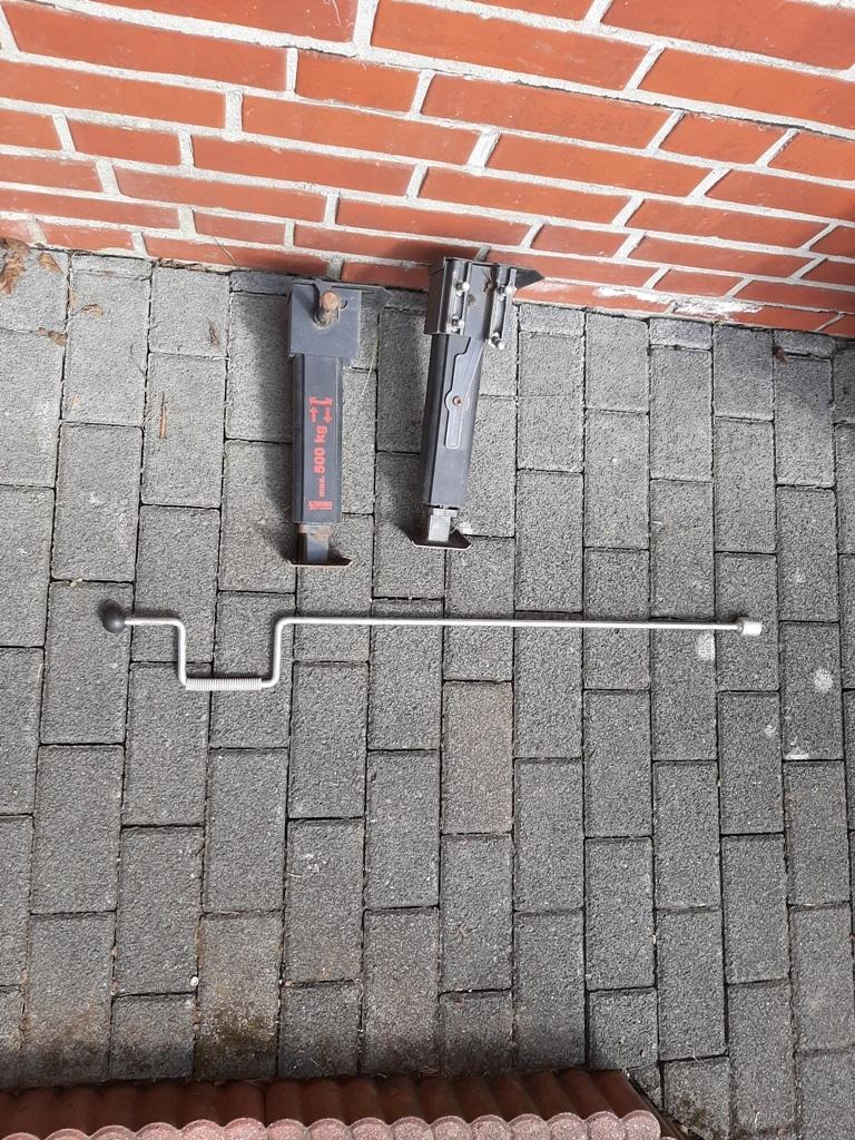 Waren bei mir 3 Jahre am Fahrzeug und werden nun nicht mehr gebraucht.Es werden 2 Stützen und die Kurbel hier verkauft.( Schrauben sind leider nicht mehr dabei, aber sollten für den Käufer kein Problem sein.