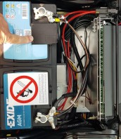 Nach Ausbau der AGM (die Kabel an den Polen habe ich in Tüten gepackt, damit sie zusammen bleiben. Fahrzeugbatterie war vorher schon abgeklemmt