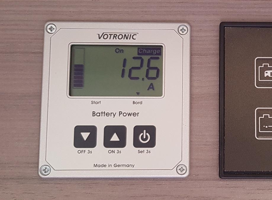 Am Hobby Bedienpanel (das mit den LEDs) werden mir für die Starterbatterie drei LEDs angezeigt, was bei 12,5 (mittlerweile 12,4 V) eigentlich eine zuviel ist. Alle Sicherungen wurden geprüft. Das EBL erhält die Spannung der Batterie und damit auch die Ladespannung, wenn das Ladegerät an ist. Wie es vom EBL weiter Richtung Starterbatterie läuft, weiß ich allerdings nicht, aber das habe ich ja auch nicht angetastet.