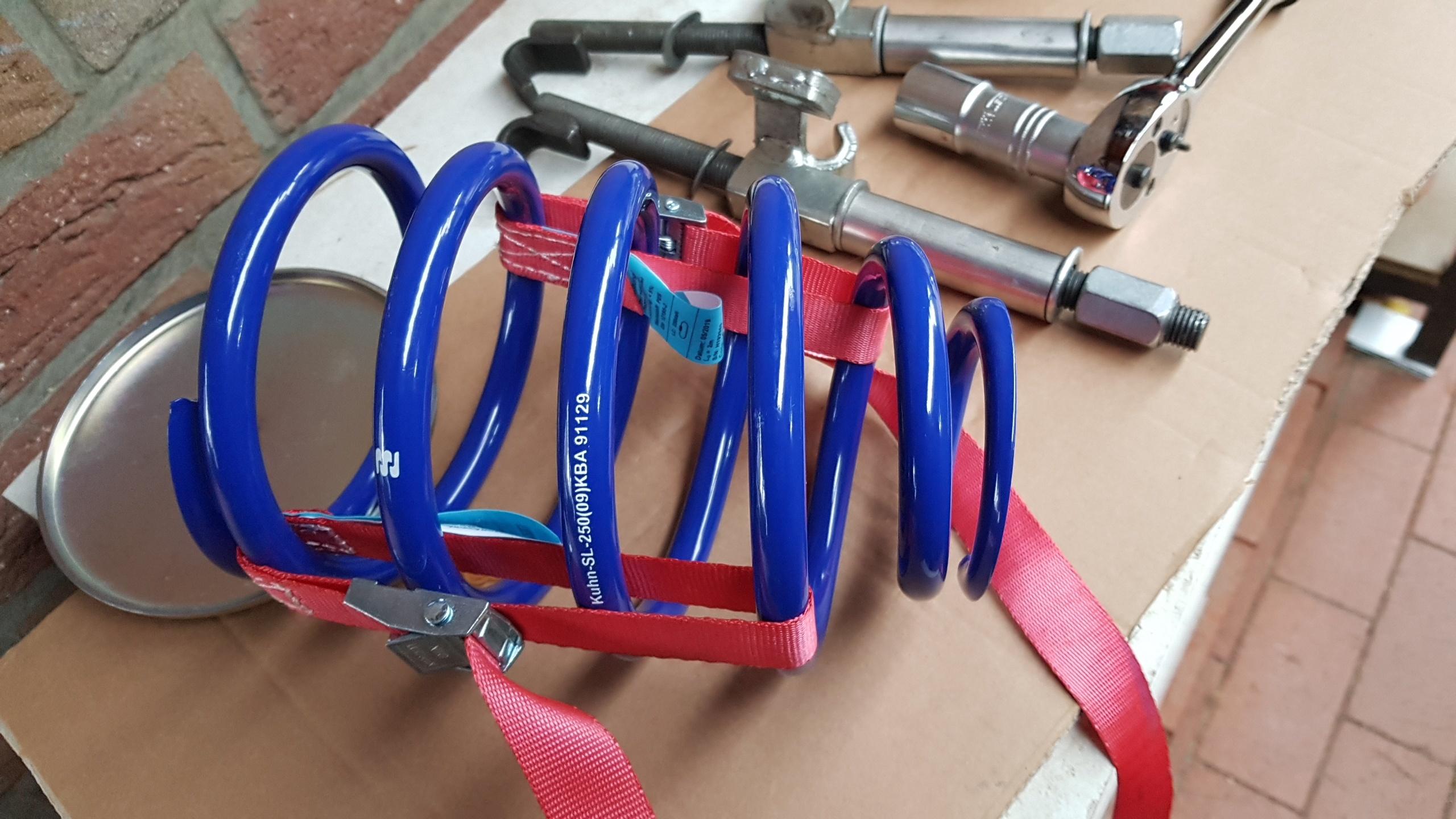 Ja die Federn sich schon gekauft und somit werde ich nicht mehr auf die Luftfedern wechseln können, aber die Zusatzfedern werden wohl auch ihren Dienst tun - ich habe einen Federnspanner der die Federn von außen greift , der sollte klappen - damit kann ich die Federn auf 155 mm zusammendrücken - sobald das Wetter was besser ist gehe ich da ran .