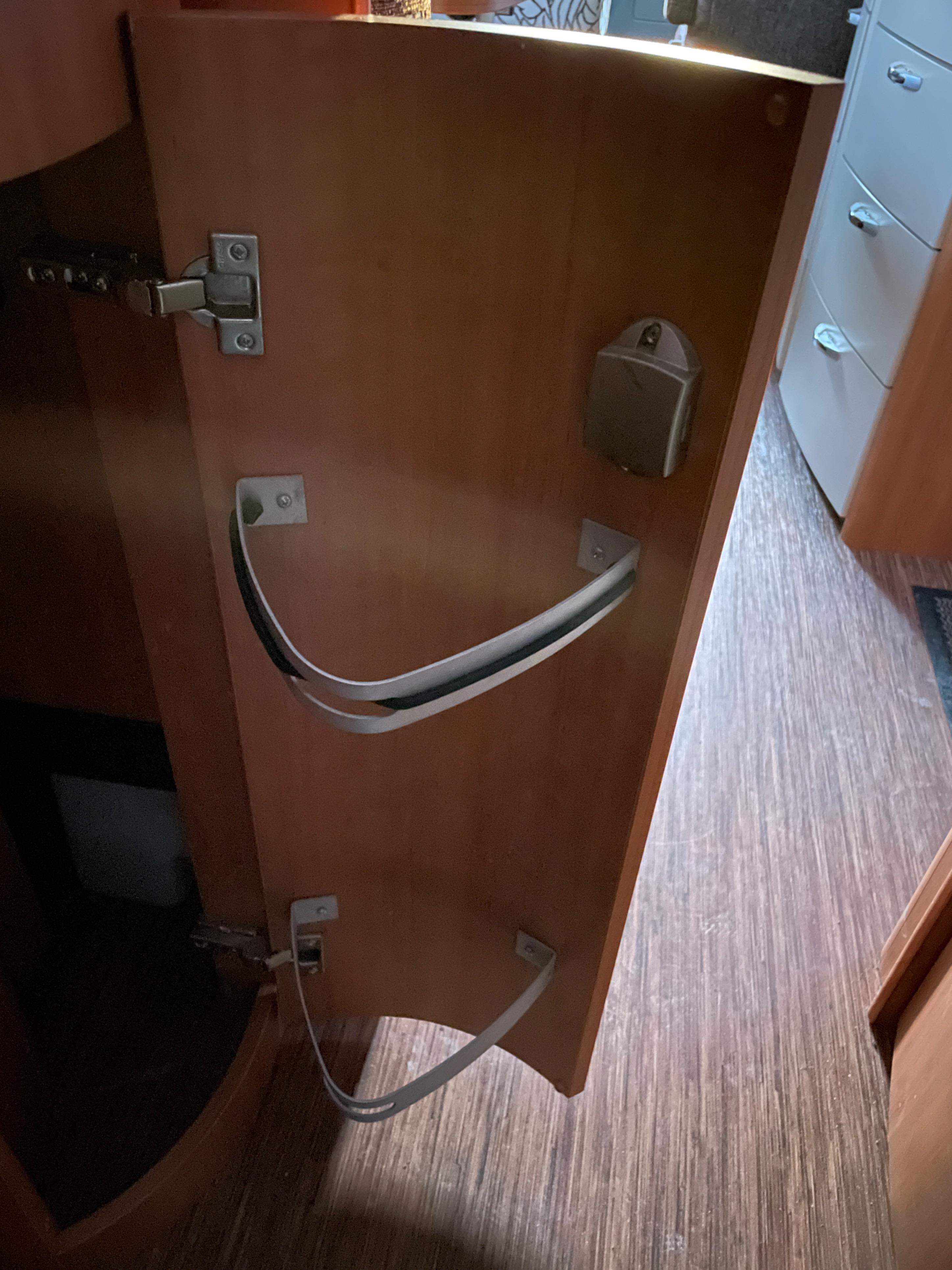 hier auch direkt meine erste Frage. In unserem Siesta65GM Modelljahr 2012 haben wir hinter der Sitzgruppe ein Schränkchen mit Haltern. Siehe Fotos. Die Vermutung lag nahe das es dafür einen Abfallbehälter gibt. Ein Hobbyhändler kann im Teilekatalog aber nichts finden. Hobby selbst kann auch nicht sagen was es sein soll. Weiss jemand was da fehlt oder hin soll? In der Küche oder sonst wo haben wir auch keinen Abfallsammler, so das wir das vermutet haben.