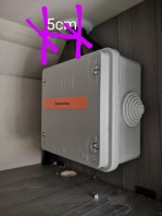 Ich hab von innen nach oben durchgebohrt, dadurch ergibt sich die Position der Dose auf dem Dach von selber.