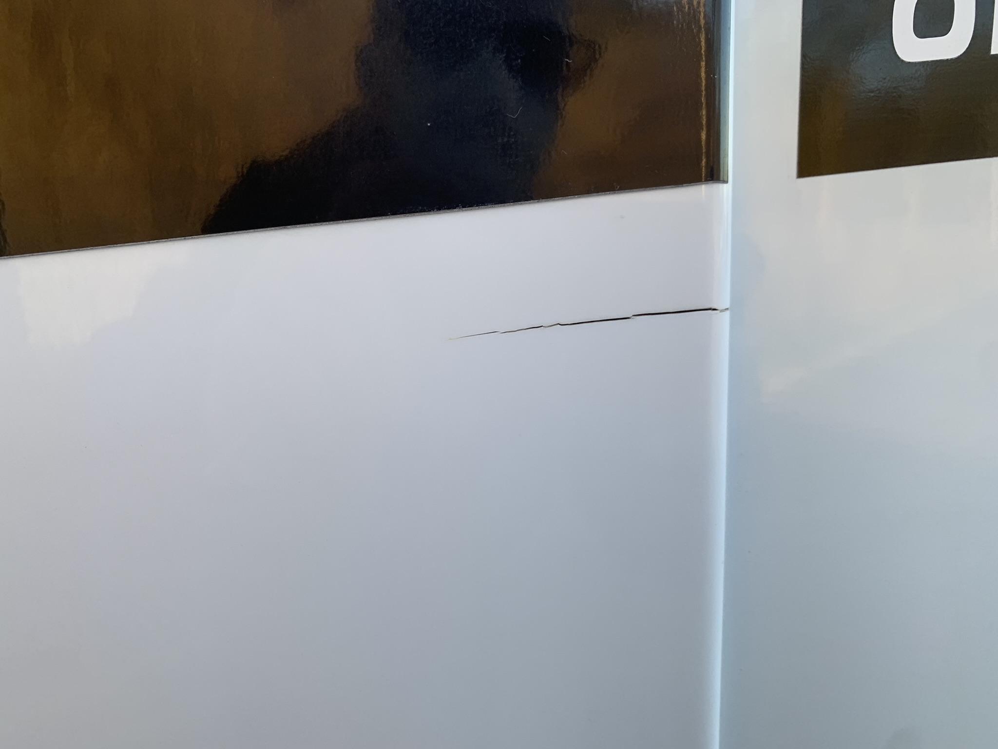 Ein Eindringen von Feuchtigkeit liegt meistens nicht vor bzw. ist auch nicht zu erkennen, somit kommt auch nicht die Dichtigkeitsgarantie zur Anwendung. Die Rissbildung, wenn man es einmal weiß sucht man gezielt danach, ist leider auch bei vielen anderen Fahrzeugen zu finden. Sehr oft auch unterm Dekoraufkleber.
