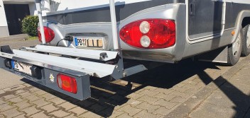 Die Bühne wurde an einem Hobby 725 AK mit Alko-Tiefrahmen montiert.