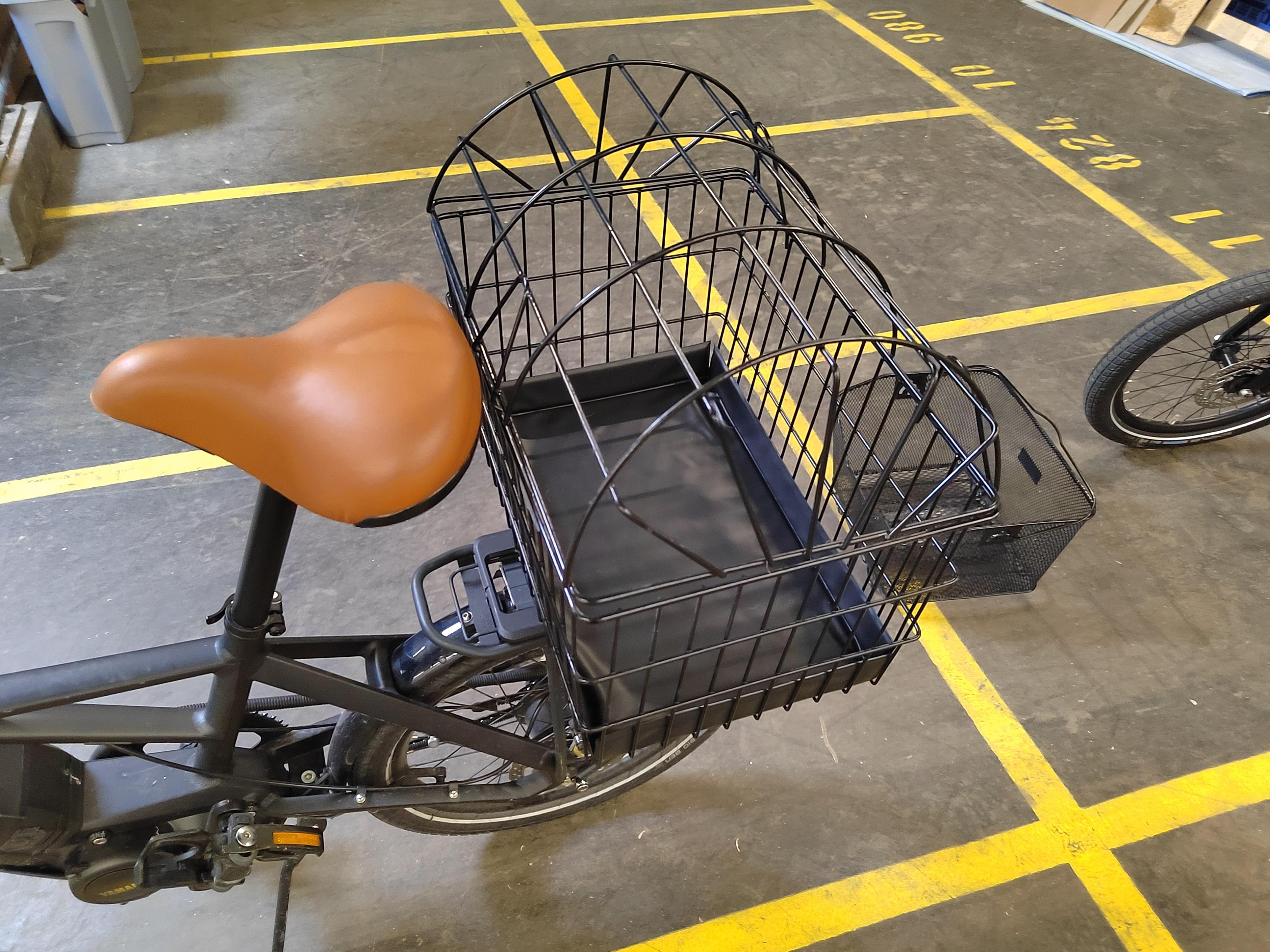 Jedes Rad hat einen Fahrradkorb der auf den Gepäckträger aufgeschoben und arretiert wird.
