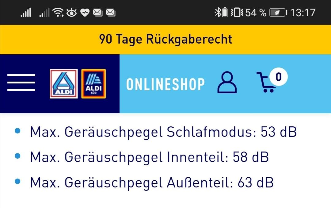 Lt.Datenblatt soll die Aldi-Anlage folgende Geräusche entwickeln: