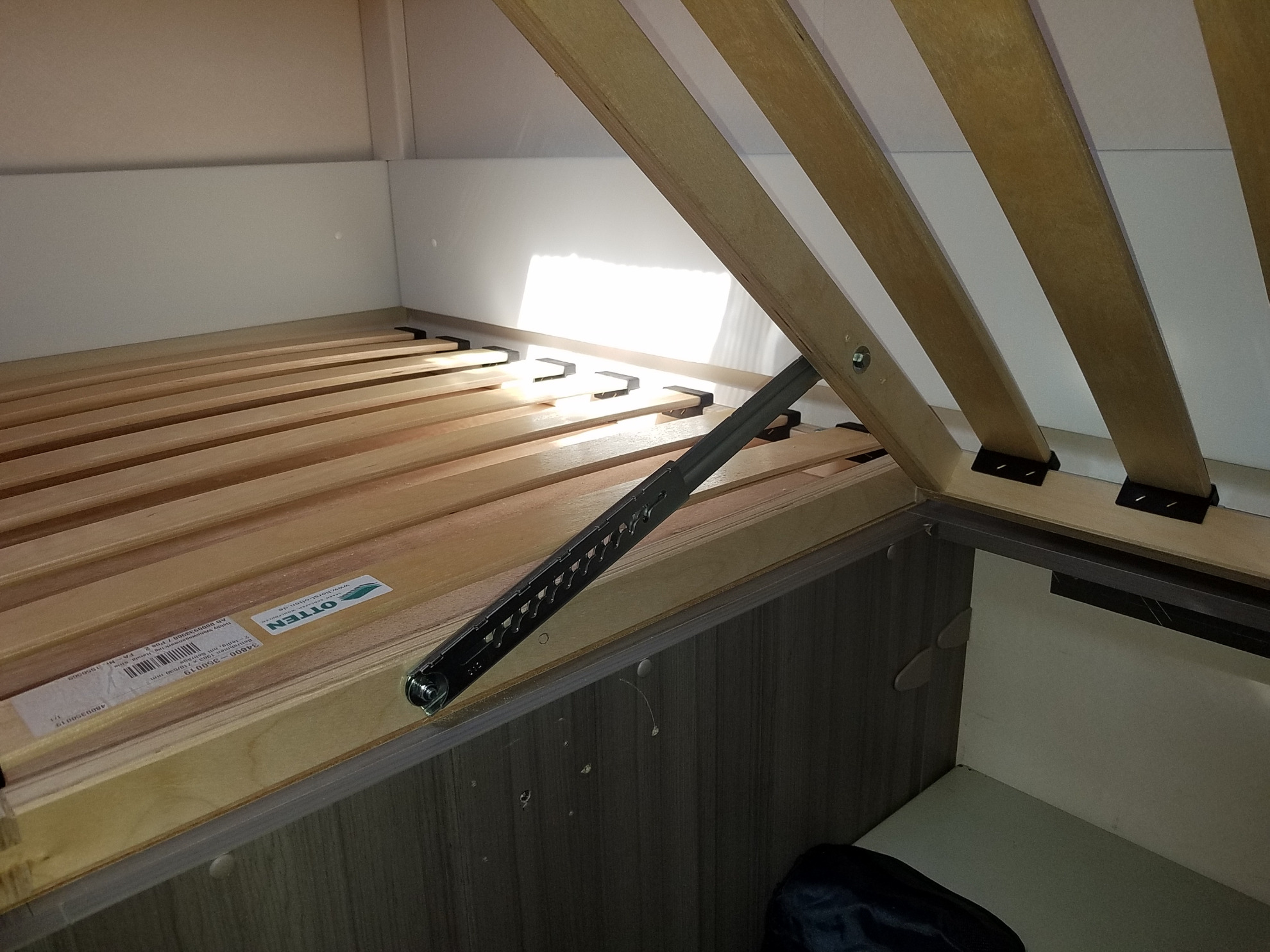 ... ich hab mal das Staufach unter dem Bett der Beifahrerseite mir angesehen. Dabei festgestellt, das die Möbel auseinander gehen. Ursache könnte sein, die doch sehr starke Gasdruckfeder, sofort entfernt...