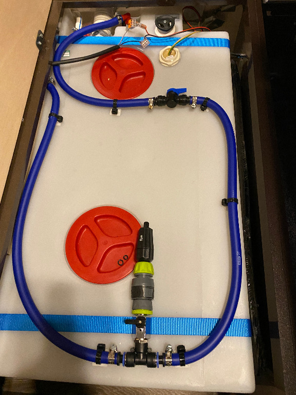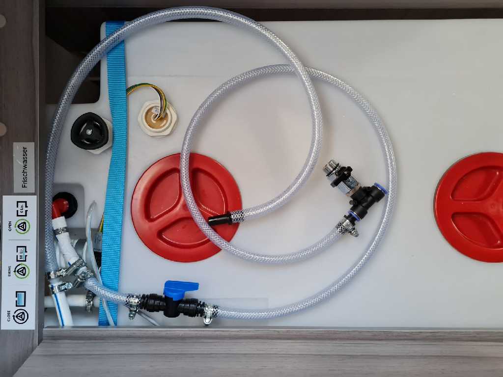 Die Leitungen von der Küche aus mit einem Maximal Druck von 0,5 Bar durchblasen. (Küche = weiteste Weg zum Tank bei meinem Modell)