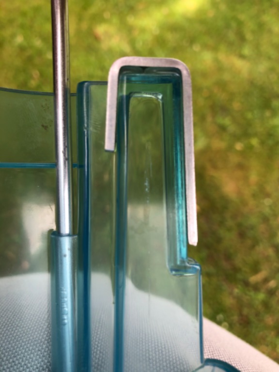 Wieder zusammenkleben hatte keinen Erfolg. Wir haben dort immer Getränke, 3x 1 L Flaschen, zu stehen und dafür wollten wir es auch weiter nutzen. Erst eine zusätzliche Verstärkung der Aufnahmeführung mit einem Metallwinkel (U Profil), von außen aufgeklebt, beendete das leidige Thema. Seit ca. vier Jahren, keine Probleme mehr. Die Aktion, hat uns bestimmt schon viel Geld gespart.