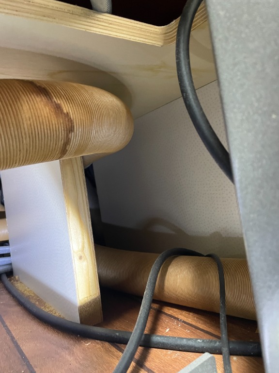 Hierbei habe ich dann eine sehr sonderliche Kabelverlegung zu den 2 Steckdosen in der Arbeitsplatte festgestellt siehe Bilder.