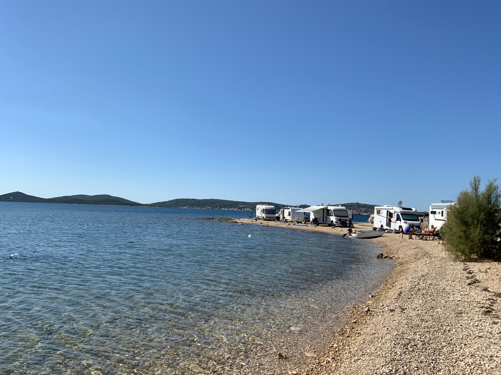Wir haben unseren letzten Campingplatz in Kroatien verlassen. Bezahlt haben wir 24,- pro Nacht. Nach unserem Eindruck wird dieser Platz von Langzeitcampern mit vielen Hunden frequentiert, die erste Reihe am Strand ist wohl dauerhaft durchreserviert.