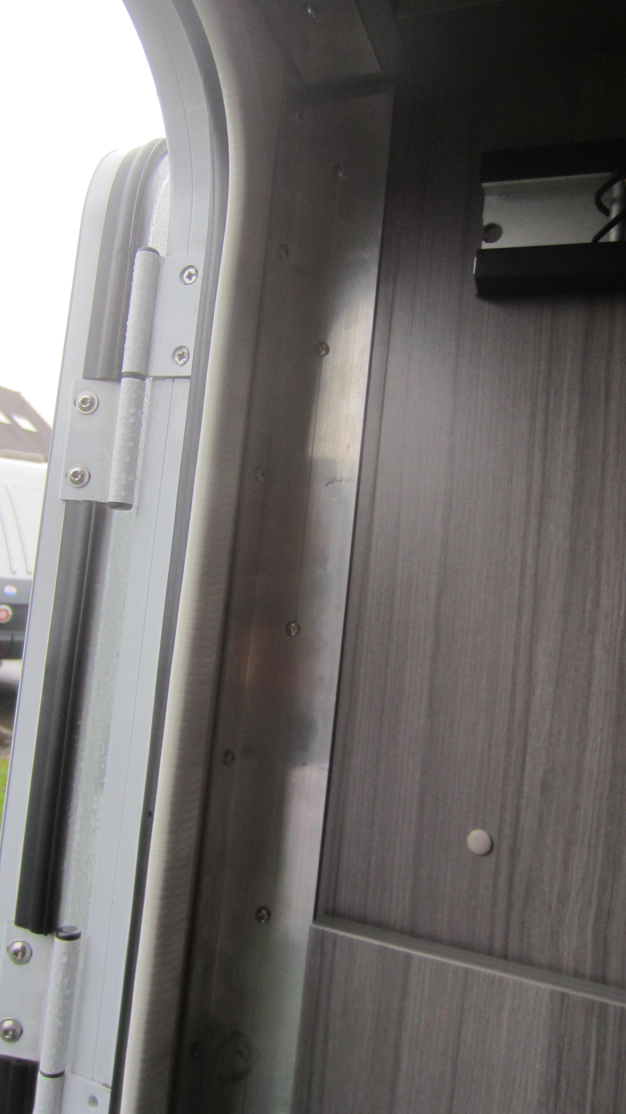 Hobby hat ihm die Anweisung gegeben, den Möbelbau in der Heckgarage zu verstärken. Dazu sollen in dem Bereich der sichtbaren Innenecke von Möbelwand und Außenwand zusätzliche Metallwinkel (Aluminium oder Stahl? ich weiß es noch nicht genau) eingebaut werden. Die Verbindung soll durch Verschraubung und Verklebung erfolgen. Die Aussage vom Service-Mitarbeiter war also (wie von mir vermutet) für den Arsch.