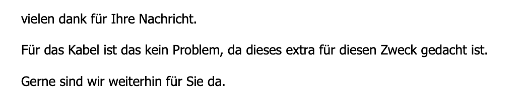 • Dichtung hin oder her, das Kabel wird bei jedem Türschliessen, mehr oder weniger, geknickt. Oft genug an der gleichen Stelle und der Draht ist durch. Wozu das führen kann ist alles andere als spaßig.