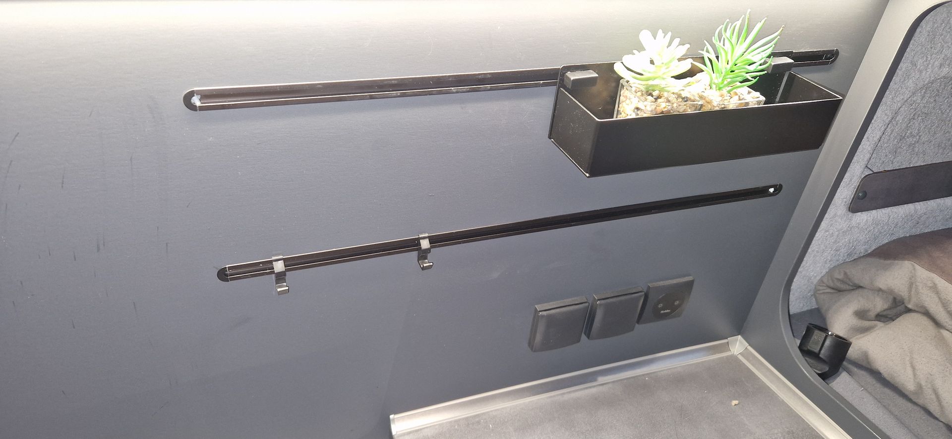 bin gerade dabei mir einen Kaffeemaschinenhalter für das Schienensystem über dem Kühlschrank zu bauen. Leider war nur ab Werk ein Kasten und 2 Haken serienmäßig montiert. Benötige jetzt noch 2 weitere Adapter zum drehen , habe aber bei Hobby nichts weiter gefunden. Hat jemand zufällig irgendwo weitere passende Teile für das System bestellt oder kennt den Hersteller?
