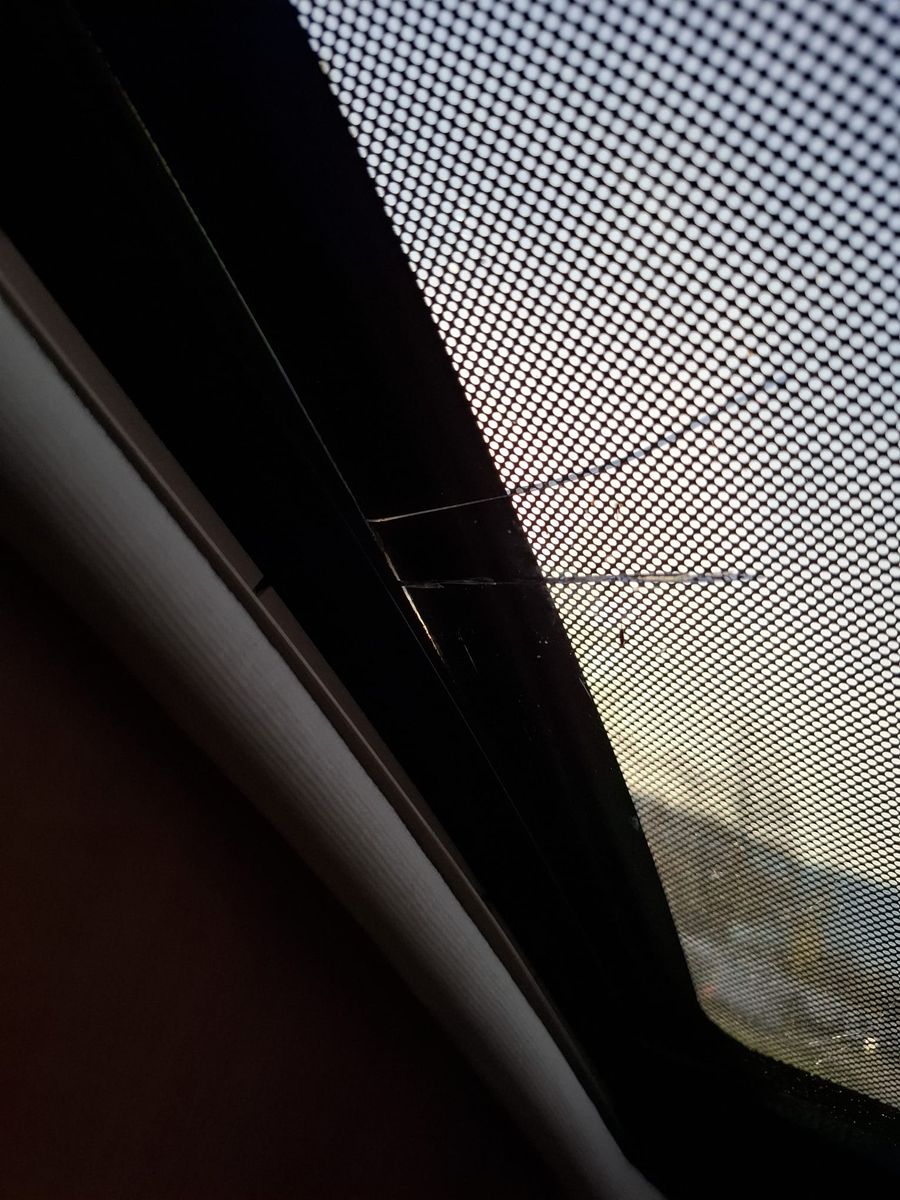 Im Urlaub ist etwas auf unser Panoramafenster gefallen und hat einen Riss hinterlassen.