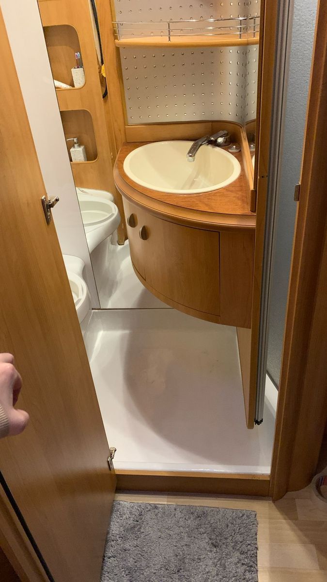 Beim Kauf vom Wohnmobile war die Dusche gefliest, wodurch man den Zustand der Duschwanne leider nicht erkennen konnte. Schnell stellte sich jedoch heraus, dass sie undicht war. Also hieß es: Fliesen und altes Silikon entfernen.